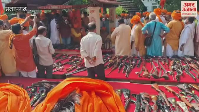 Kunda MLA Raghuraj Pratap Singh Rajabhaiya performed the traditional weapon worship ceremony, shocking people with the cache of weapons.