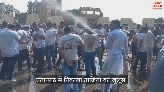 VIDEO : प्रतापगढ़ में परंपरागत तरीके से निकाला गया ताजिया का जुलूस, पानी की बौछारों से