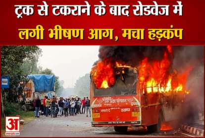 रायबरेली में सोमवार को लखनऊ डिपो की बस अनियंत्रित होकर एक ट्रक में पीछे से जा घुसी। स्पीड इतनी तेज थी कि डिवाइडर के ऊपर चढ़ गई। देखते ही देखते बस के फ्यूल टैंक में आग लग गई। यह हादसा लखनऊ-रायबरेली हाईवे पर हुआ। बस में सवार 30 से ज्यादा लोग घायल हुए हैं।