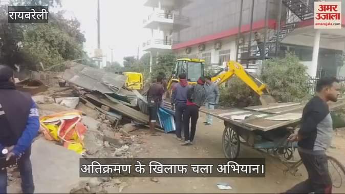 VIDEO : Raebareli: सारस चौराहे पर चला अतिक्रमण के खिलाफ अभियान, रोजी-रोटी छिनने से दुकानदारों में आक्रोश
