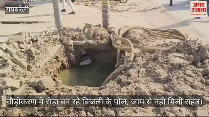 VIDEO : रायबरेली में चौड़ीकरण में रोड़ा बन रहे बिजली के पोल, जाम से नहीं मिली राहत