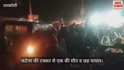यूपी के रायबरेली में बृहस्पतिवार की रात डीह-रायबरेली मार्ग पर कंटेनर ने साइकिल सवार को टक्कर मार दी। इससे उसकी मौत हो गई। लोगों ने देखा तो कंटेनर का पीछा किया। इस पर आरोपी चालक ने भागने के चक्कर में पहले एक तांगा फिर मारुती वैन और बोलेरो में टक्कर मारी। इसके बाद दिल्ली जा रही एक बस में टक्कर मारते हुए पेड़ की डाल में फंस गया।
