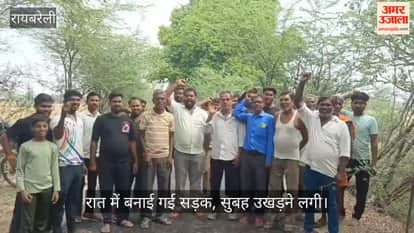रायबरेली में रात में बनाई गई सड़क, सुबह उखड़ने लगी; ग्रामीणों ने किया प्रदर्शन