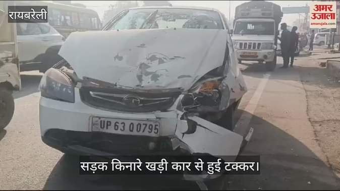 VIDEO : रायबरेली: सड़क पर खड़ी कार से टकराई कार, तीन घायल