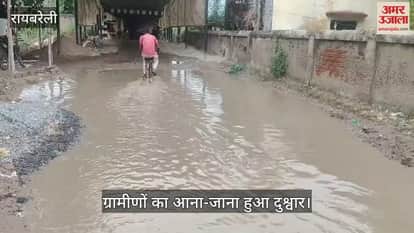 VIDEO: Raebareli: खराब सड़क के गड्ढों में भरा पानी, ग्रामीणों का आना-जाना हुआ दुश्वार
