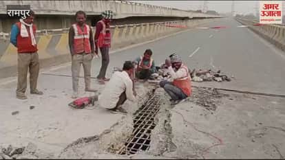 VIDEO : रामपुर में हाईवे पर कोसी पुल धंसा, दूसरे पुल से गुजारे गए दोनों साइडों के वाहन