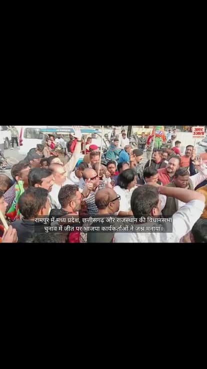 रामपुर में मध्य प्रदेश, छत्तीसगढ़ और राजस्थान की विधानसभा चुनाव में जीत पर भाजपा कार्यकर्ताओं ने जश्न मनाया। उन्होंने पटाखा फोड़कर धूम धड़ाके के साथ नारे लगाते हुए मिठाइयां भी बांटी। कार्यकर्ताओं ने प्रधानमंत्री नरेंद्र मोदी समेत अन्य को इसकी बधाई दी। उन्होंने कहा कि कांग्रेस की गलत नीतियों से लोग आजिज आ चुके हैं।