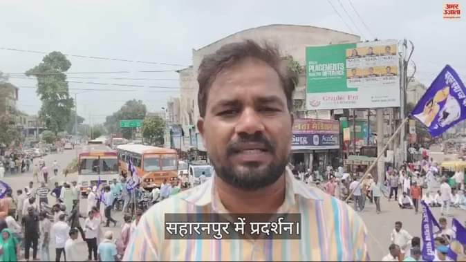 VIDEO : भारत बंद को लेकर सहारनपुर में घंटाघर पर लगाया जाम, नियंत्रण से बाहर हुई भीड़