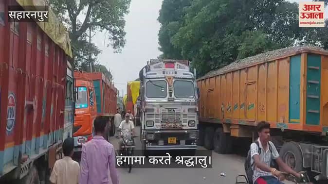 VIDEO : सहारनपुर में खनिज वाहनों के बीच फंसा डीजे, शाकंभरी देवी रोड जाम, श्रद्धालुओं का हंगामा