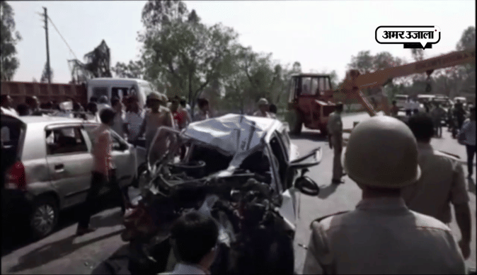 सम्भल में कार और ट्रक की टक्कर, पांच लोगों की मौत
