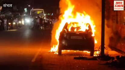 कार में अचानक लगी आग, थम गया यातायात, दमकल कर्मियों ने काबू पाया