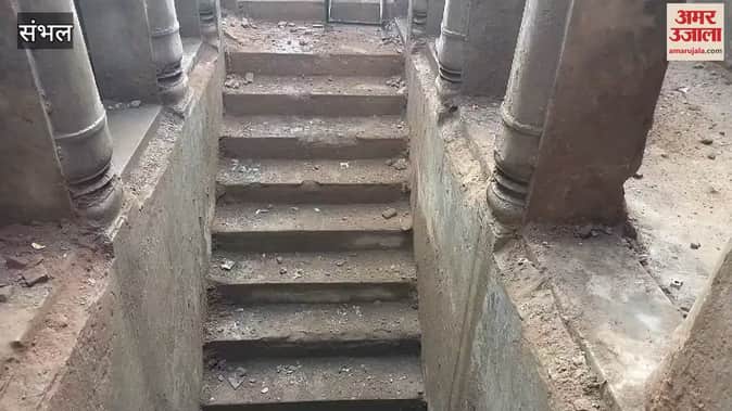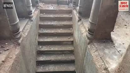 VIDEO : चंदाैसी में बावड़ी की खोदाई का काम बंद, बावड़ी को तिरपार से ढकवाया गया