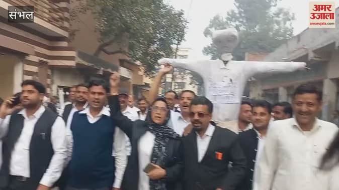 VIDEO : संभल में गाजियाबाद प्रकरण को लेकर वकीलों का हड़ताल, पुतला जलाकर किया विरोध