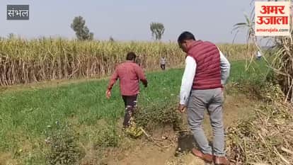 Hindi News ›   Video ›   Uttar Pradesh ›   Sambhal News ›   Villagers panicked after seeing a leopard; a forest department team tied a goat in a cage to catch the leopard