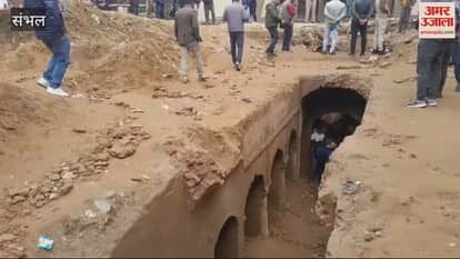 VIDEO : चंदाैसी में पंद्रह फीट तक हुई कुएं की खोदाई, एक गलियारे का लिंटर टूटा निकला