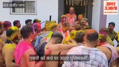 एसपी को उठाया कंधे पर, पुलिसकर्मियों ने खेली जमकर होली