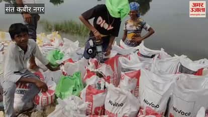 सरयू नदी में संभावित बाढ़ को देखते हुए तैयारियां काफी जोरों पर हैं। स्थिति यह है कि धनघटा तहसील क्षेत्र का तुर्कवलिया गांव जहां पर कटान पूर्व में हुई थी। वहां पर बंधे पर ही मजदूर लगाकर बोरों में बालू भरवाया जा रहा है। इसके साथ ही जेनरेटर लगवाकर बोरा सिलने की मशीन से बालू की इन बोरियों की सिलाई करवाई जा रही है।