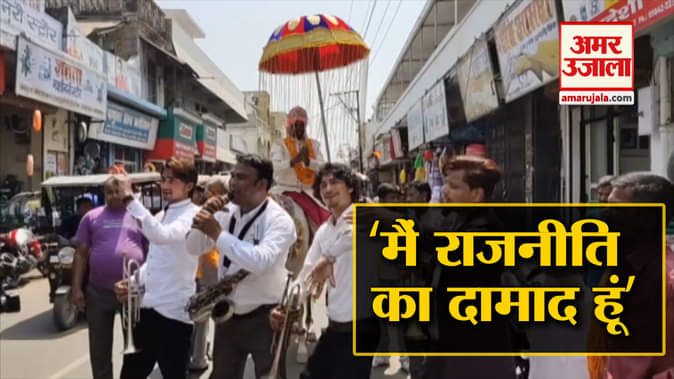 बारात लेकर दूल्हे के वेश में पहुंचे प्रत्याशी, लेकिन बीच में घोड़ी से उतरना पड़ा