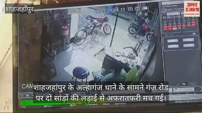 शाहजहांपुर के अल्हागंज थाने के सामने गंज रोड पर दो सांड़ों की लड़ाई से अफरातफरी मच गई। सांड़ों की टक्कर से दो बाइकें क्षतिग्रस्त हो गईं। दोनों सांड़ लड़ते हुए मेडिकल स्टोर में घुस गए, जिसका मेडिकल संचालक बाल-बाल बचा। घटना का सीसीटीवी फुटेज भी वायरल हो रहा है।