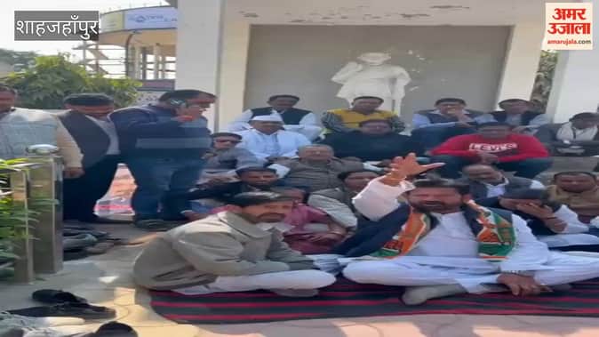 Shahjahanpur: लाठीचार्ज के विरोध में प्रदर्शन, गांधी प्रतिमा के सामने धरने पर बैठे कांग्रेसीजन