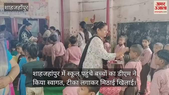 शाहजहांपुर में स्कूल पहुंचे बच्चों का डीएम ने किया स्वागत, टीका लगाकर मिठाई खिलाई