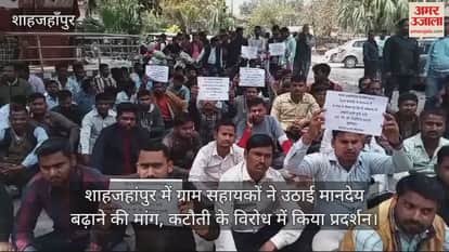 VIDEO : शाहजहांपुर में ग्राम सहायकों ने उठाई मानदेय बढ़ाने की मांग, कटौती के विरोध में किया प्रदर्शन