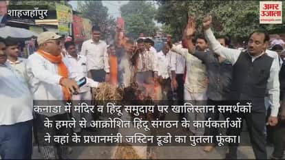 VIDEO : कनाडा के प्रधानमंत्री के खिलाफ फूटा गुस्सा, शाहजहांपुर में हिंदू संगठन ने फूंका पुतला