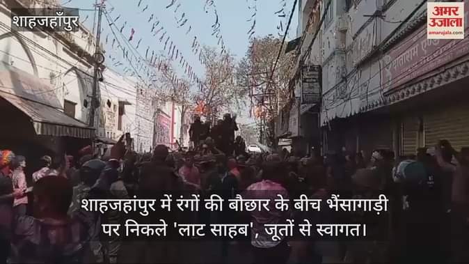 शाहजहांपुर में होली पर रंगों की बौछार के बीच शुक्रवार को लाट साहब का जुलूस निकाला गया। बड़े लाट साहब आरएएफ के घेरे में रहे। रंगों की बौछार के साथ ही उनका स्वागत जूते और चप्पलों से किया गया। इस बीच ड्रोन कैमरे से निगहबानी की गई। पुलिस और प्रशासन के अधिकारी जुलूस पर निगाह बनाए रहे।