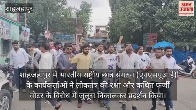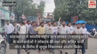 शाहजहांपुर में भारतीय राष्ट्रीय छात्र संगठन (एनएसयूआई) के कार्यकर्ताओं ने लोकतंत्र की रक्षा और कथित फर्जी वोटर के विरोध में जुलूस निकालकर प्रदर्शन किया। जिला निर्वाचन कार्यालय घेरने निकले पदाधिकारियों व कार्यकर्ताओं को पुलिस के रोकने का प्रयास किया। पुलिस से धक्का-मुक्की व नोकझोंक भी हुई।