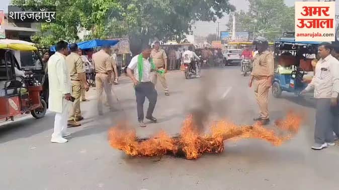 Shahjahanpur: निगरानी करता रह गया पुलिस बल, भाकियू ने दहन कर दिया प्रशासन का पुतला