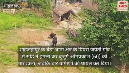 शाहजहांपुर के बंडा थाना क्षेत्र के पिपरा जपती गांव में सांड ने हमला कर बुजुर्ग ओमप्रकाश (60) को मार डाला, जबकि चार ग्रामीणों को घायल कर दिया। इससे दहशत फैल गई। गांव में सांड से बचने के लिए ग्रामीण अपने घरों में कैद हो गए। ग्रामीणों ने सांड को पकड़वाने की मांग उठाई है।