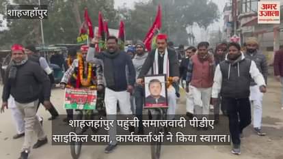 VIDEO : शाहजहांपुर पहुंची समाजवादी पीडीए साइकिल यात्रा, कार्यकर्ताओं ने किया स्वागत