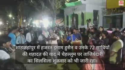 शाहजहांपुर में हजरत इमाम हुसैन व उनके 72 साथियों की शहादत की याद में चेहल्लुम पर ताजियेदारी का सिलसिला शुक्रवार को भी जारी रहा। मोहल्लों में मातम के बाद ताजियों का जुलूस मुख्य सड़क पर आते हुए करबला की ओर चल दिया। चेहल्लुम पर मन्नतों के मुताबिक मोहल्ला ककरा कलां, लाल इमली चौराहा, किला, बिजलीपुरा आदि में ताजिये रखे गए थे। बड़े ढ़ोल के साथ मोहल्लों में मातम किया गया। ककरा कलां से जुलूस ईदगाह, लाल इमली चौराहा, घंटाघर होते हुए चमकनी स्थित करबला की ओर कूच कर दिया। मोहल्ला किला से निकले ताजिये का जुलूस सड़क पर आ गए। इस बीच मातम के साथ मर्सिया और नात पेश की गई। अकीदतमंदों ने हजरत इमाम हुसैन की शहादत को याद करते हुए फातिहा पढ़कर मुल्क में अमन-चैन और कौम की सलामती के लिए दुआ मांगी। अकीदतमंदों की भीड़ को देखते हुए जगह-जगह लंगर भी बांटा गया। एसपी अशोक कुमार मीणा के निर्देश पर ताजियों के जुलूस की सुरक्षा के पुख्ता इंतजाम किए गए। पुलिस की ड्यूटी लगाने के साथ जाम से बचाने के लिए कर्मी लगाए गए।
