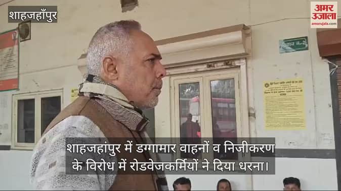 VIDEO : शाहजहांपुर में डग्गामार वाहनों व निजीकरण के विरोध में रोडवेजकर्मियों ने दिया धरना