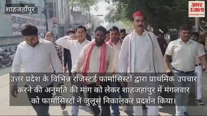 VIDEO : शाहजहांपुर में फार्मासिस्टों ने जुलूस निकालकर कलक्ट्रेट में किया प्रदर्शन, यह है मांग