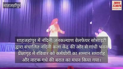 शाहजहांपुर में नंदिनी जनकल्याण वेलफेयर सोसाइटी द्वारा संचालित नंदिनी कला केंद्र की ओर से गांधी भवन प्रेक्षागृह में रविवार को कर्मयोगी का सम्मान समारोह और नाटक गधे की बरात का मंचन किया गया। इस दौरान समाजसेवी अर्पण श्रीवास्तव, व्यापारी सुबोध शक्ति, राजनीतिज्ञ रामबरन सिंह चंदेल और रंगकर्मी शिवा सक्सेना व प्रेम कुमार को सम्मानित किया गया। इसके बाद कलाकारों ने अपने मंचन से दर्शकों को हंसने पर मजबूर कर दिया।
