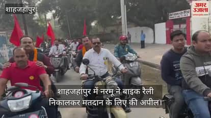 VIDEO : शाहजहांपुर में नरमू ने बाइक रैली निकालकर मतदान के लिए की अपील