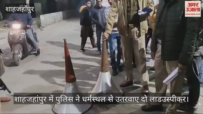 VIDEO : शाहजहांपुर में पुलिस ने धर्मस्थल से उतरवाए दो लाडउस्पीकर