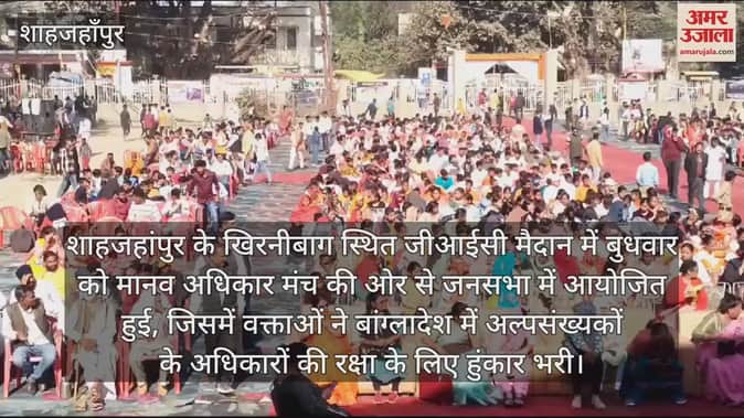 शाहजहांपुर के खिरनीबाग स्थित जीआईसी मैदान में बुधवार को मानव अधिकार मंच की ओर से जनसभा में आयोजित हुई, जिसमें वक्ताओं ने बांग्लादेश में अल्पसंख्यकों के अधिकारों की रक्षा के लिए हुंकार भरी। वक्ताओं ने प्रधानमंत्री नरेंद्र मोदी से बांग्लादेश में अल्पसंख्यक हिंदुओं पर हो रहे अत्याचार को रोकने और उनकी सुरक्षा सुनिश्चित करने की मांग की।