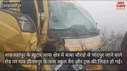VIDEO : शाहजहांपुर में स्कूल वैन से टकराया ट्रक, चार बच्चों समेत पांच घायल