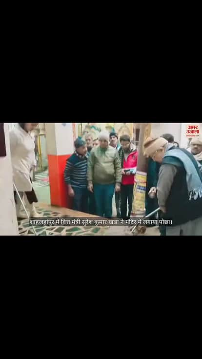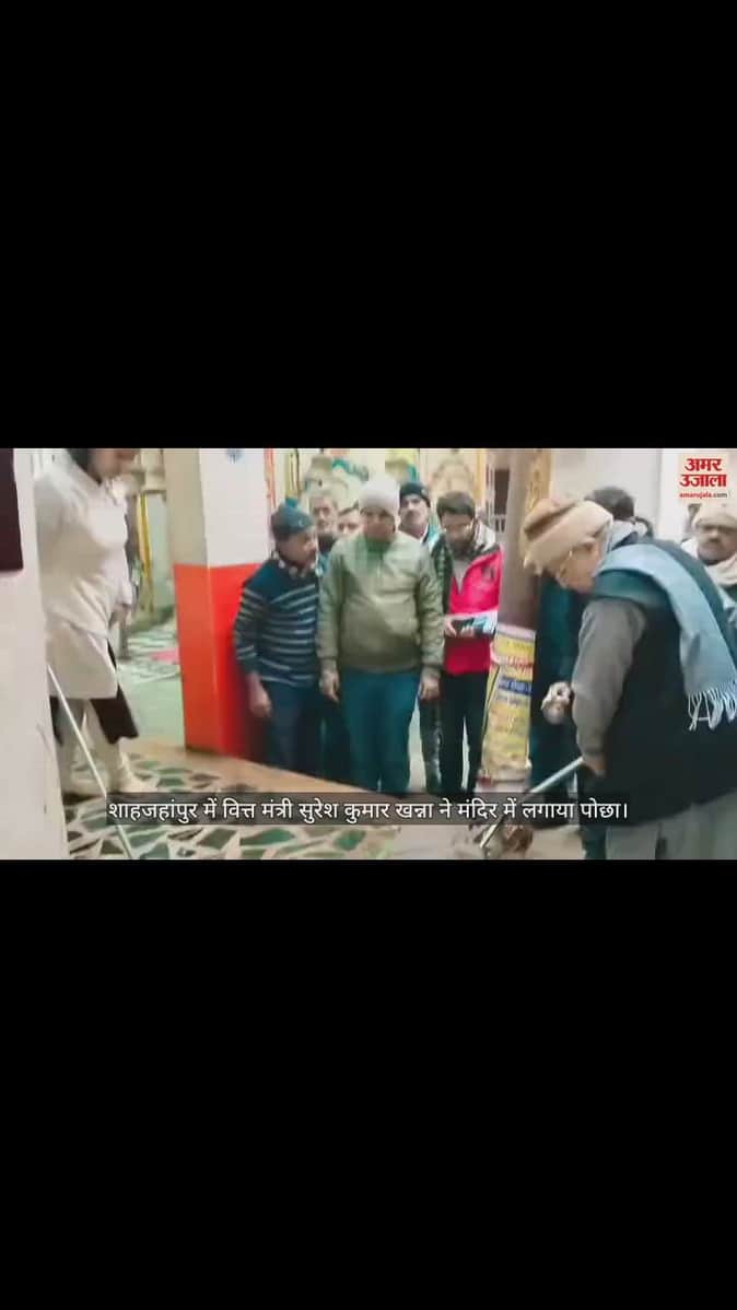 VIDEO : शाहजहांपुर में वित्त मंत्री सुरेश कुमार खन्ना ने मंदिर में लगाया पोछा