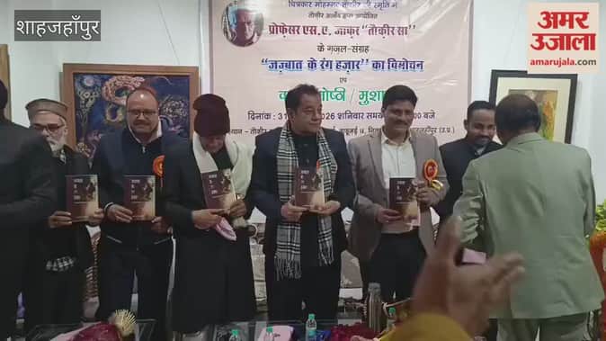 शाहजहांपुर में भावनाओं को कैनवास पर उकेरने के साथ ही शब्दों की लड़ी बुनकर गजल कहने वाले प्रोफेसर एसए जाफर उर्फ तौकीर सा के गजल संग्रह जज्बात के रंग हजार का विमोचन किया गया। इस दौरान 25 कवियों व शायरों ने अपनी कविताओं व रचनाओं से समा बांध दिया। रविवार को मोहल्ला बाडूजई स्थित तौकीर आर्टकेड में हुए कार्यक्रम में मुख्य अतिथि डिप्टी कमिश्नर जीएसटी पीके तोमर, विशिष्ट अतिथि सतेंद्र नाथ त्रिपाठी व अशफाक उल्ला खां ने दीप जलाकर किया। साहित्य संस्था इदराक और नजर मेमोरियल सोसाइटी की ओर से शायर एसए जाफर को स्मृति चिह्न देकर सम्मानित किया। इदारा उफुक-ए- नौ व दर्पण सामाजिक संस्था ने उन्हें 'कला रत्न सम्मान' से सम्मानित किया। साहित्यकार कमलेश द्विवेदी व चित्रकार डॉ. ऊषा गर्ग ने गजल संग्रह की समीक्षा प्रस्तुत की। अतिथियों ने डॉ.प्रभात शुक्ला, नरेंद्र सक्सेना, डॉ.अमीर सिंह व डॉ.आलोक सिंह के साथ पुस्तक का विमोचन किया। इसके बाद असगर यासिर, वसीम मिनाई, खलीक शौक, अजय अवस्थी, सबा नकवी सबा ने अपनी रचनाएं पढ़ी। इस मौके पर शाहिद रजा, गुलिस्तां खान, फहीम बिस्मिल, राशिद हुसैन राही, कमलेश द्विवेदी,सबा नकवी, डॉ. शाइस्ता नसीम, मुनीब अहमद आदि मौजूद रहे। आभार आयोजक डॉ.मोहम्मद कमर ने व्यक्त किया।