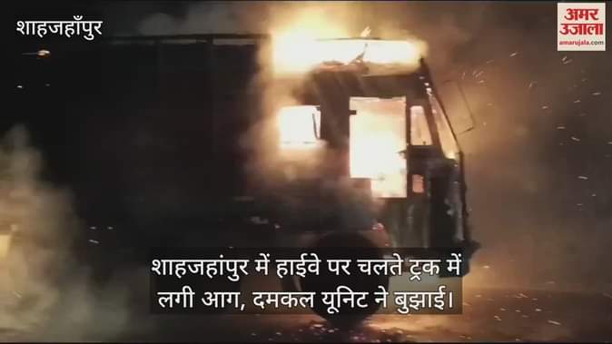 VIDEO : शाहजहांपुर में ट्रक बना आग का गोला, हाईवे पर मची अफरातफरी, दमकल यूनिट ने बुझाई आग
