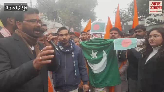 Shahjahanpur News: बांग्लादेश के खिलाफ प्रदर्शन, विहिप और बजरंग दल के कार्यकर्ताओं ने पुतला फूंका