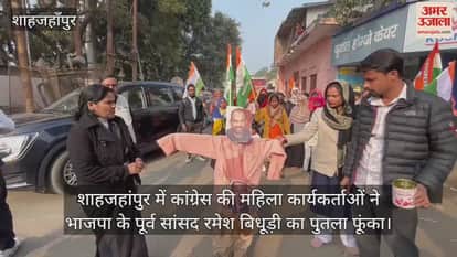 कांग्रेस राष्ट्रीय महासचिव प्रियंका गांधी पर विवादित टिप्पणी करने वाले भाजपा के पूर्व सांसद रमेश बिधूड़ी का शुक्रवार को महिला कार्यकर्ताओं ने पुतला दहन किया। शाहजहांपुर में महिला कांग्रेस जिलाध्यक्ष अर्चना वाल्मीकि के नेतृत्व में कार्यकर्ता निशात तिराहे पर एकत्रित हुईं। प्रदर्शन करते हुए पुतले को आग के हवाले कर दिया। इससे पहले टाउनहॉल स्थित पार्टी कार्यालय राजीव भवन पर बैठक में अर्चना ने कहा कि पूर्व सांसद का बयान भाजपा के नेताओं की महिलाओं के प्रति गलत सोच और गंदी मानसिकता को दर्शाता है। ऐसे नेताओं को तो जेल में डाल देना चाहिए। उन्होंने महिलाओं से इस तरह के नेताओं को चुनाव में सबक सिखाने की अपील भी की ।