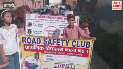 शामली के प्राथमिक विद्यालय नाला में बच्चों को रोड सेफ्टी क्लब के अंतर्गत बताए सुरक्षा के नियम, रैली निकाली