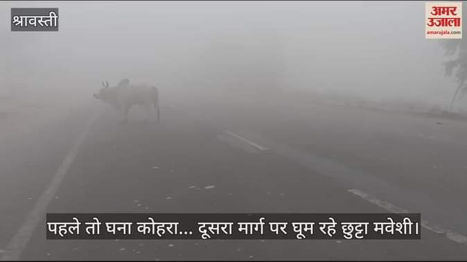 VIDEO : पहले तो घना कोहरा... दूसरा मार्ग पर घूम रहे छुट्टा मवेशी, लोगों की परेशानी हुई दोगुना