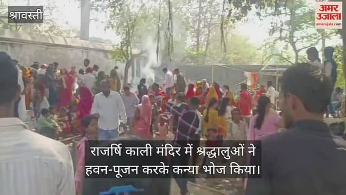 VIDEO : राजर्षि काली मंदिर में श्रद्धालुओं ने हवन-पूजन करके कन्या भोज किया