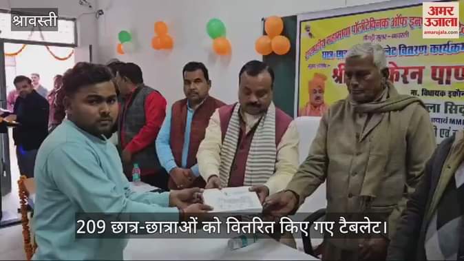 VIDEO : श्रावस्ती में 209 छात्र-छात्राओं को वितरित किए गए टैबलेट