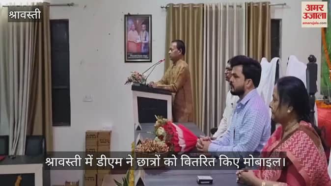 श्रावस्ती में डीएम ने छात्रों को वितरित किए मोबाइल